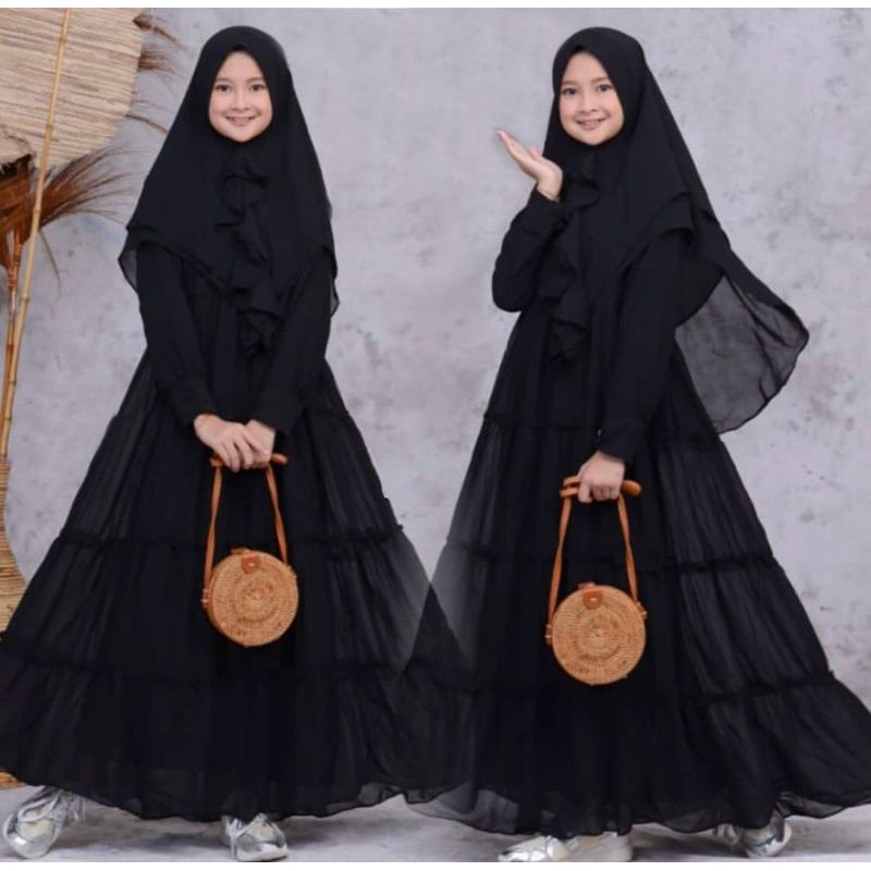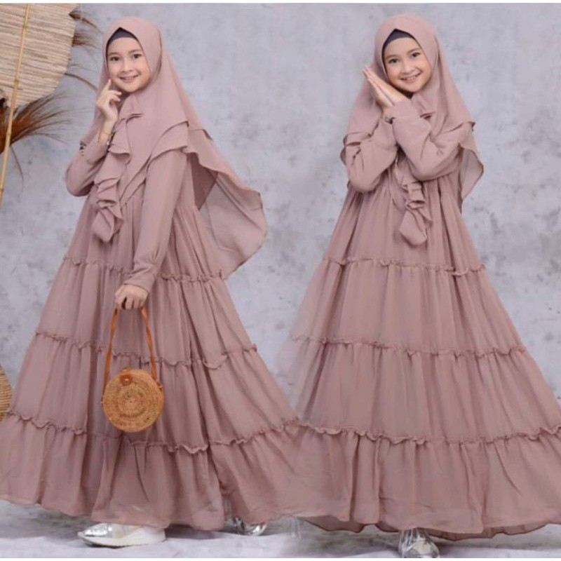 Gamis Anak Yasmin Kids Syari gamis anak Terbaru set khimar besar dan cadar premium wolfis original by Nabila Collection