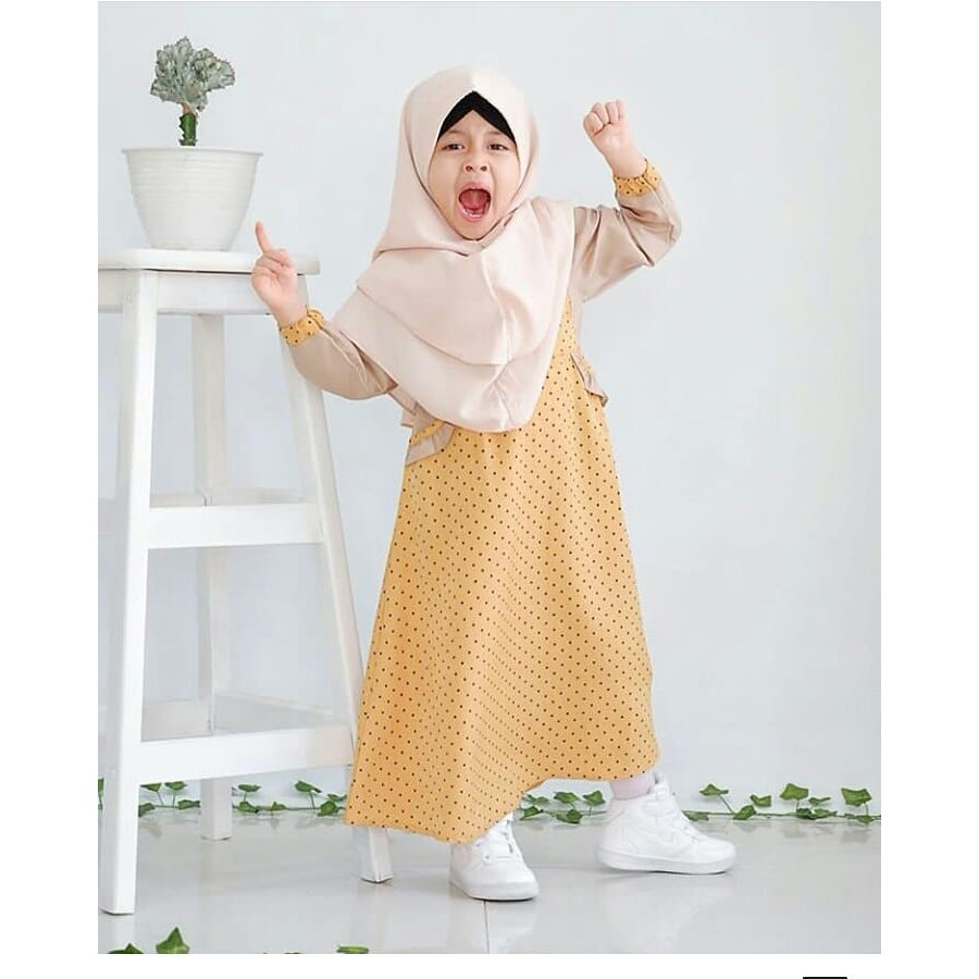Khaliza Gamis Anak Renda + Hijab 2 tahun Bahan Jersey Premium/Gamis anak terbaru 2021
