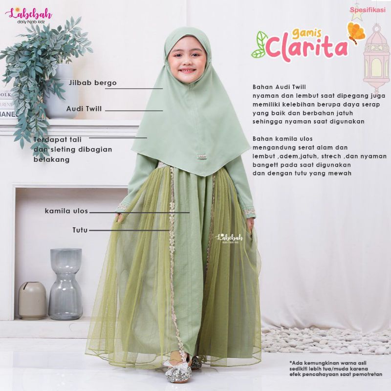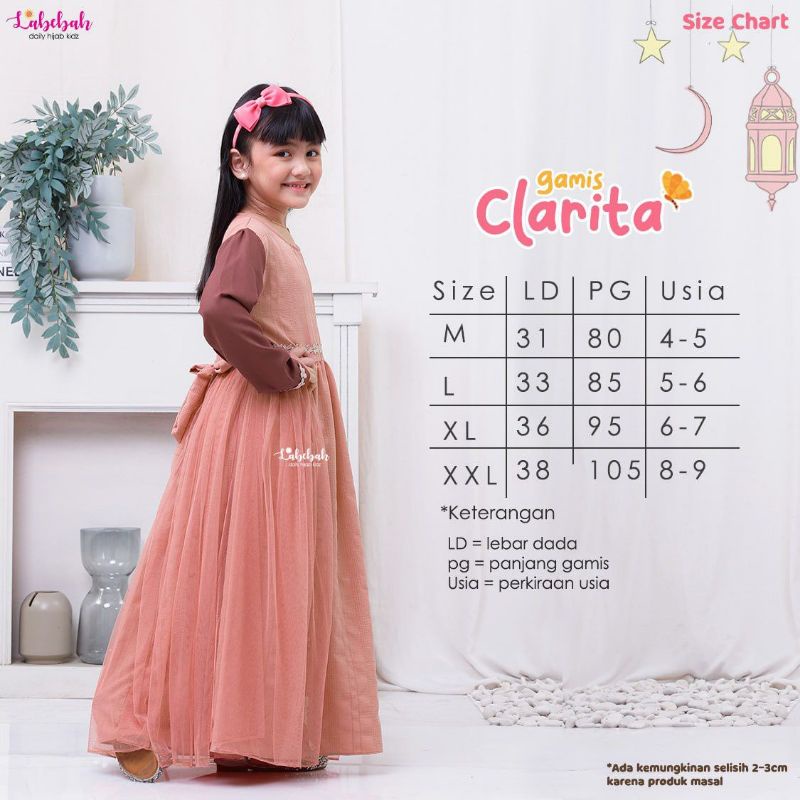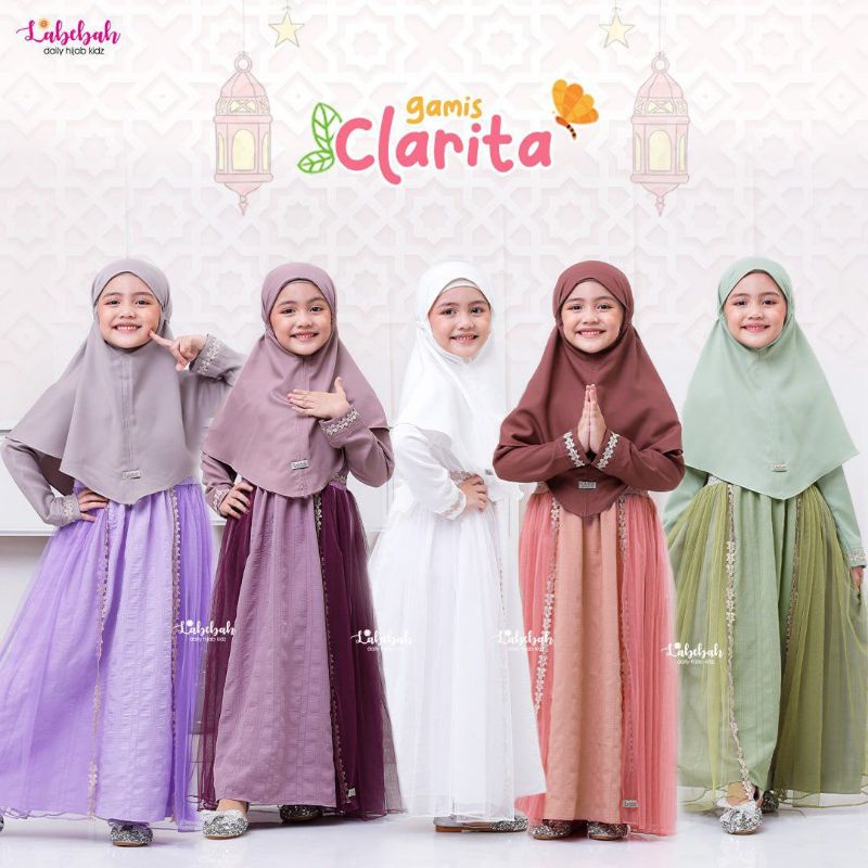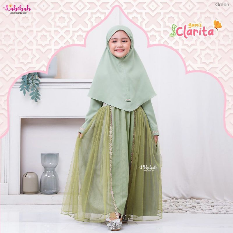 Harga gamis anak baju muslim gaun pesta dress anak perempuan terbaru original Clarita by labebah