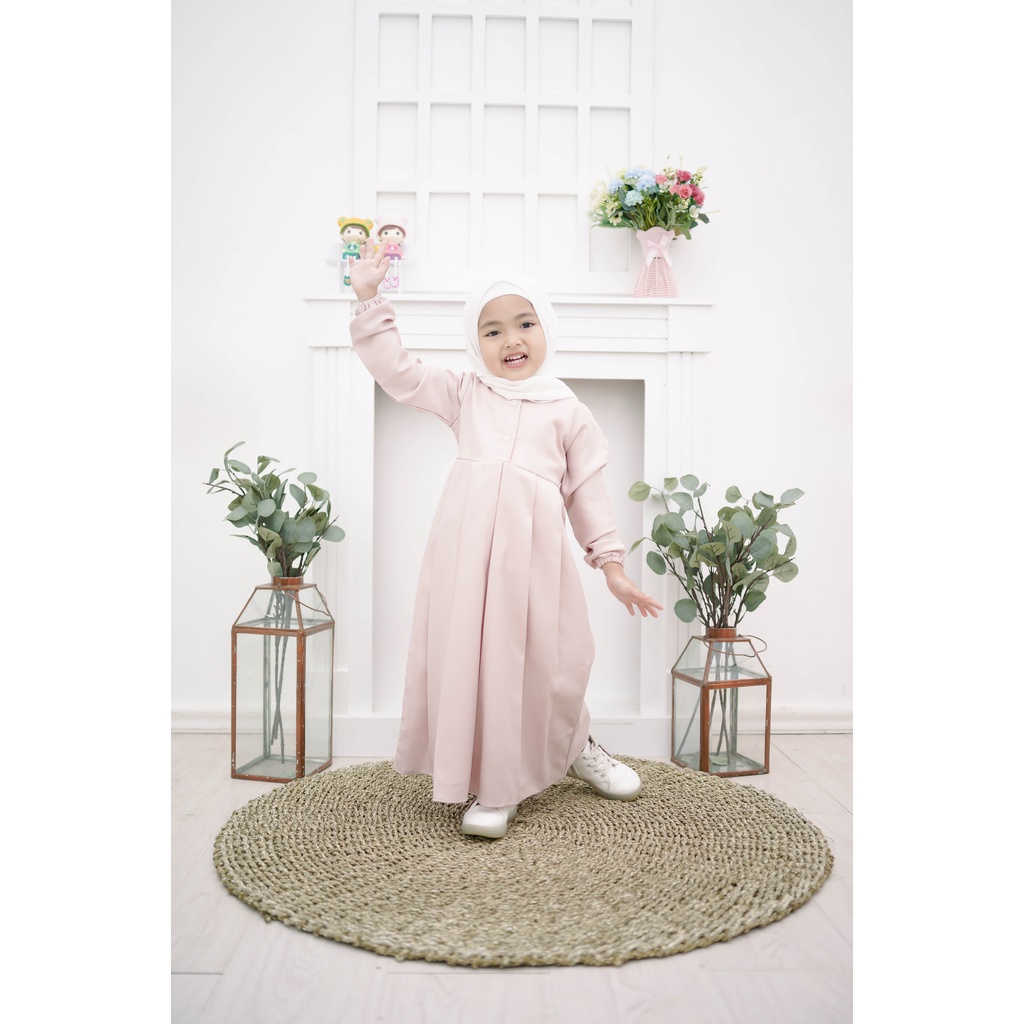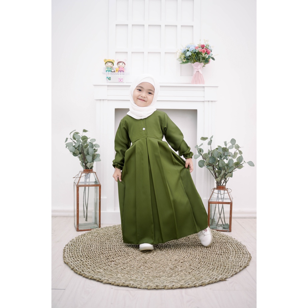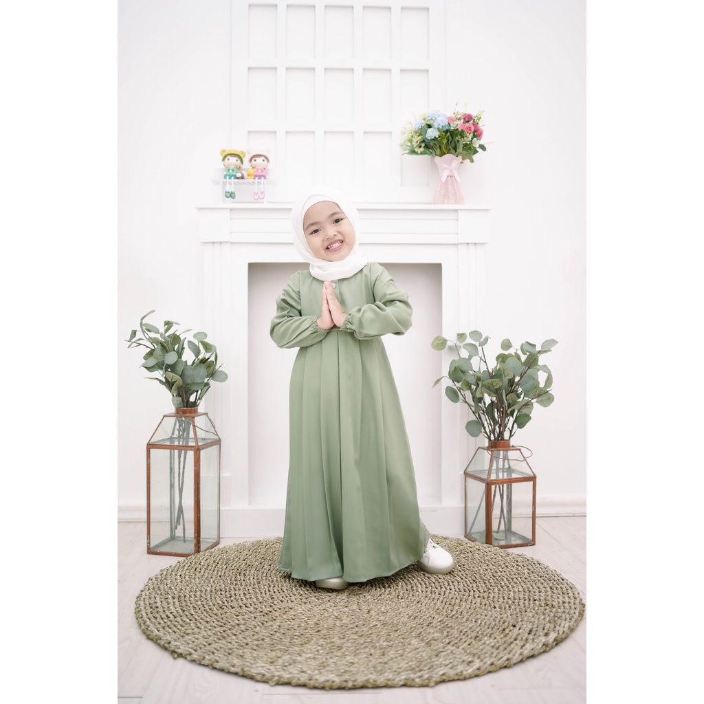 alesa kids syari gamis anak set khimar wolfis tali pnggang origial free ongkir orikenzo