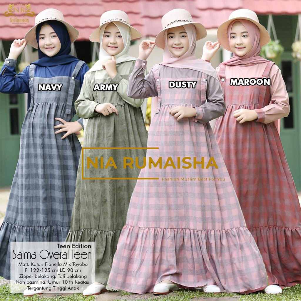 Harga Gamis Anak Remaja // Square Overall Teen Nia Rumaisha // Salma // Moria Overall // Kometa Overall Teen// Fayra Teen// Arza Overall Syakilla Teen Kids