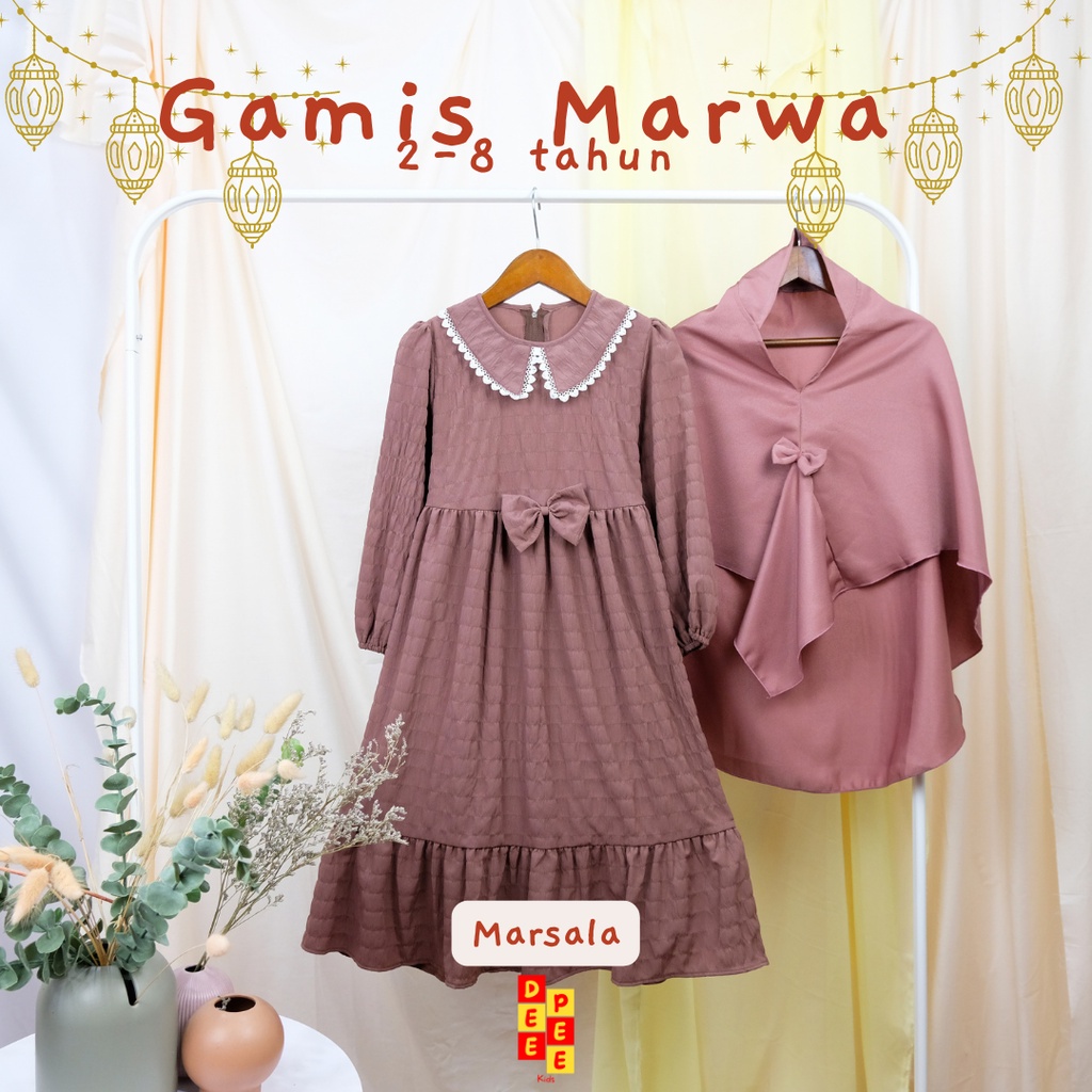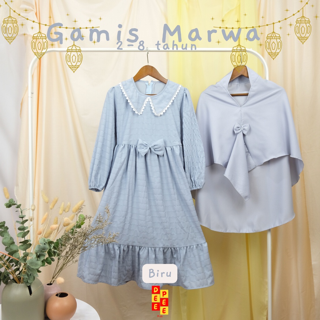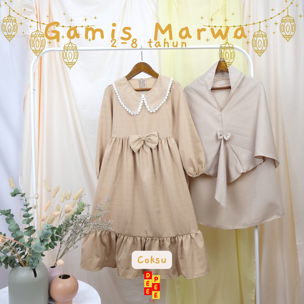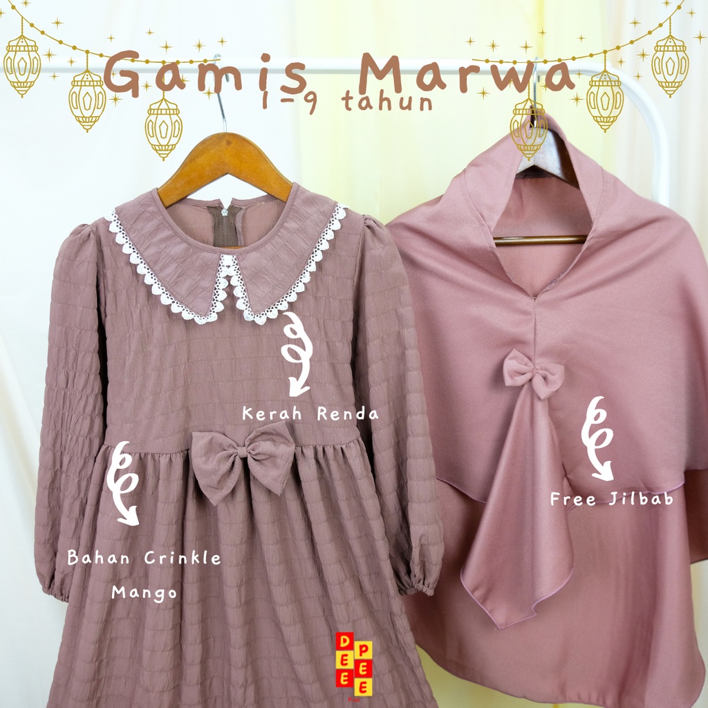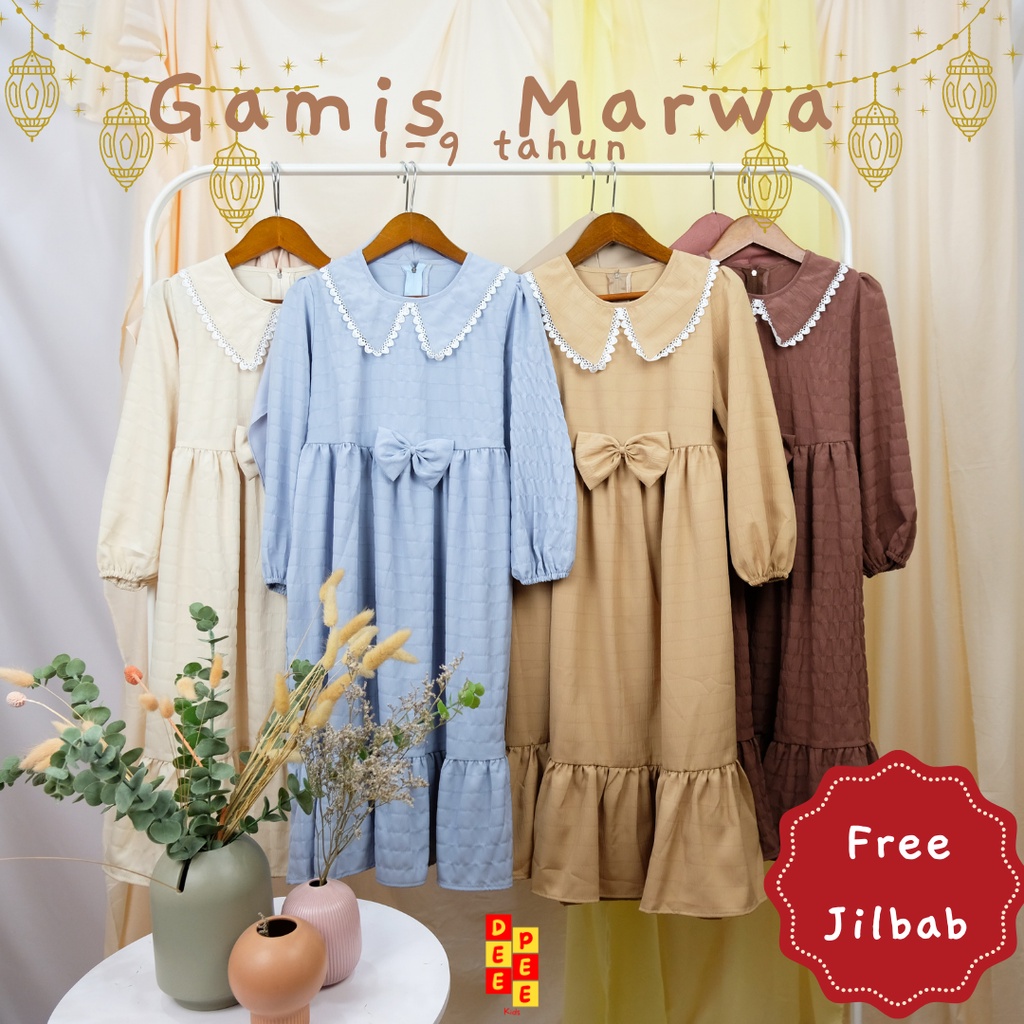 Harga Gamis MARWA gamis anak muslimah baju lebaran anak perempuan 2022 bahan crinckle warna putih ivory biru merah marsala coklat coksu mocca untuk anak 1 2 3 4 5 6 7 8 9 tahun