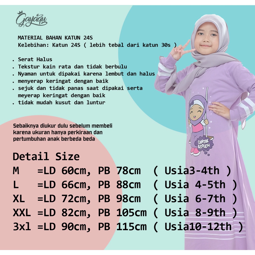 Harga Gayaqu Baju muslim anak perempuan umur 3-12 tahun katun combed