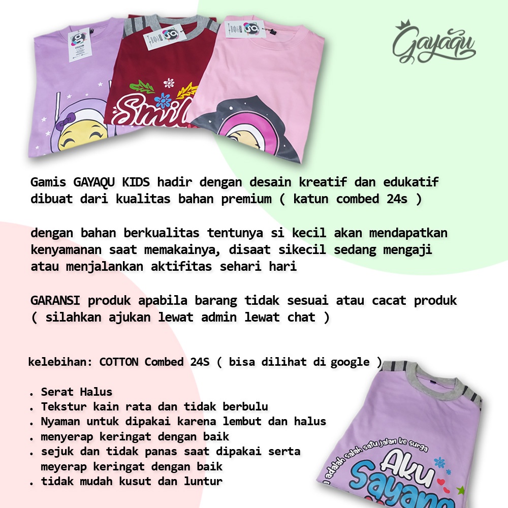 Alasan kenapa harus beli Gayaqu Baju muslim anak perempuan umur 3-12 tahun katun combed sekarang