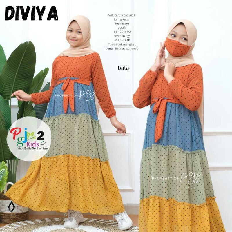 Harga Pelangi Diviya Teens Maxi Dress Gamis Anak Remaja Usia 10 11 12 13 14 Tahun Bahan Ceruty Polkadot