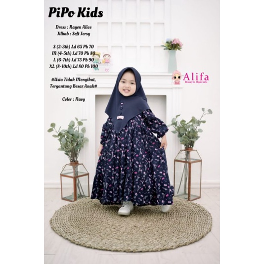 Harga PIPO SET KIDS ori ALIFA || set gamis kerudung baju muslim anak perempuan