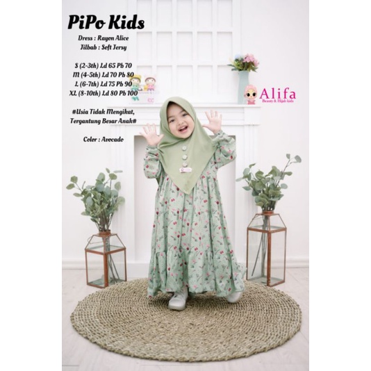 Harga PIPO SET KIDS ori ALIFA || set gamis kerudung baju muslim anak perempuan