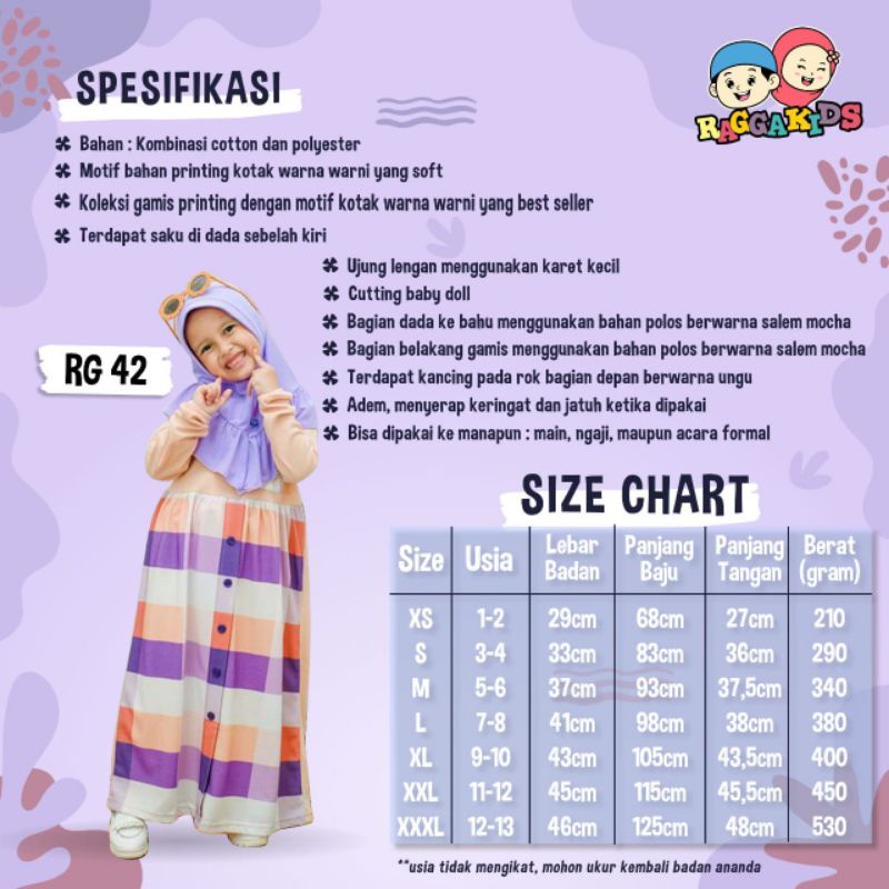 Harga Ragga Kids Gamis Anak Usia 1-13 tahun RG 42 Ungu // Raggakids RG42 Ungu