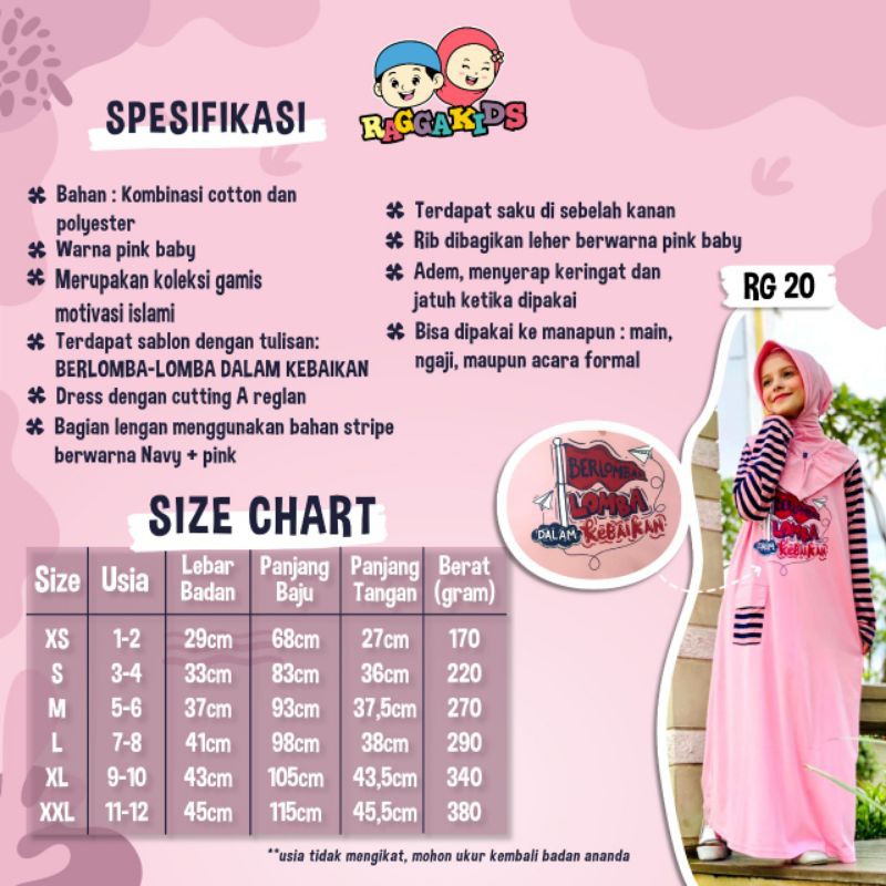 Harga Raggakids Gamis Anak usia 1 -12 tahun RG20 // Ragga Kids RG 20