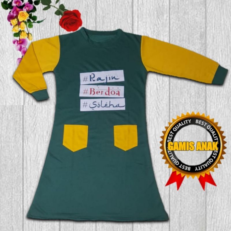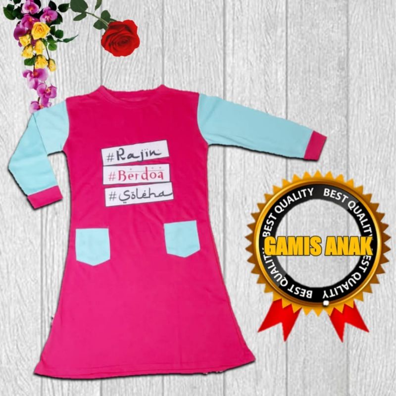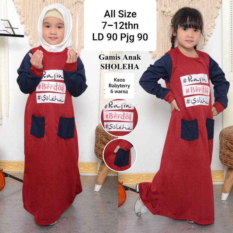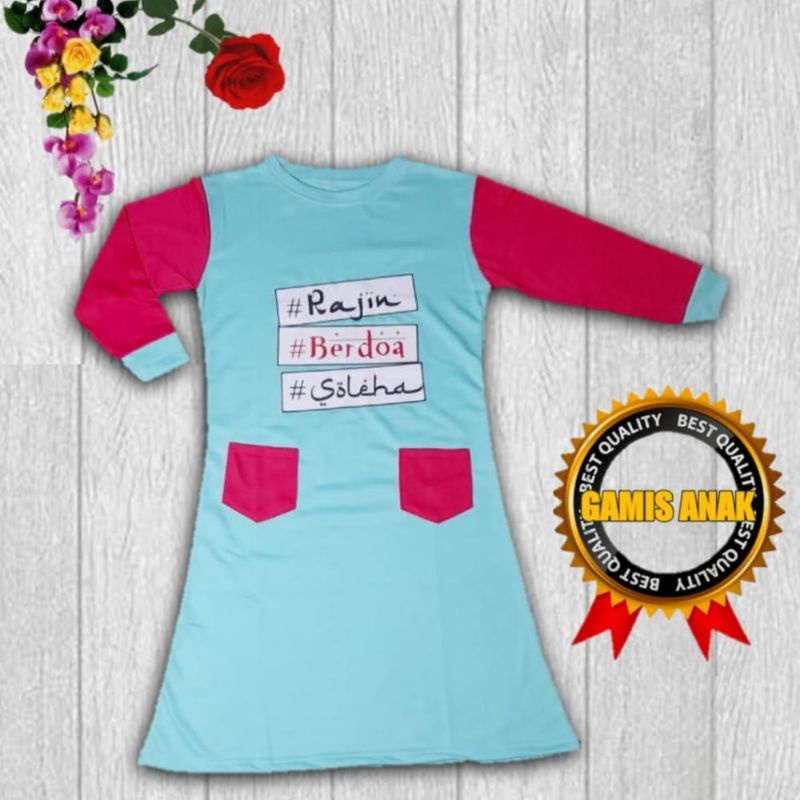 Harga RF Gamis Anak Perempuan Kaos Babyterry RAJIN BERDOA 7 8 9 10 11 12 tahun LD 90 PJ 90 cm
