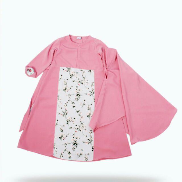 Harga Salim Moslem-Original-Busana Muslim/Gamis Anak Syari Set Kerudung Motif Bunga Usia 1-12TH