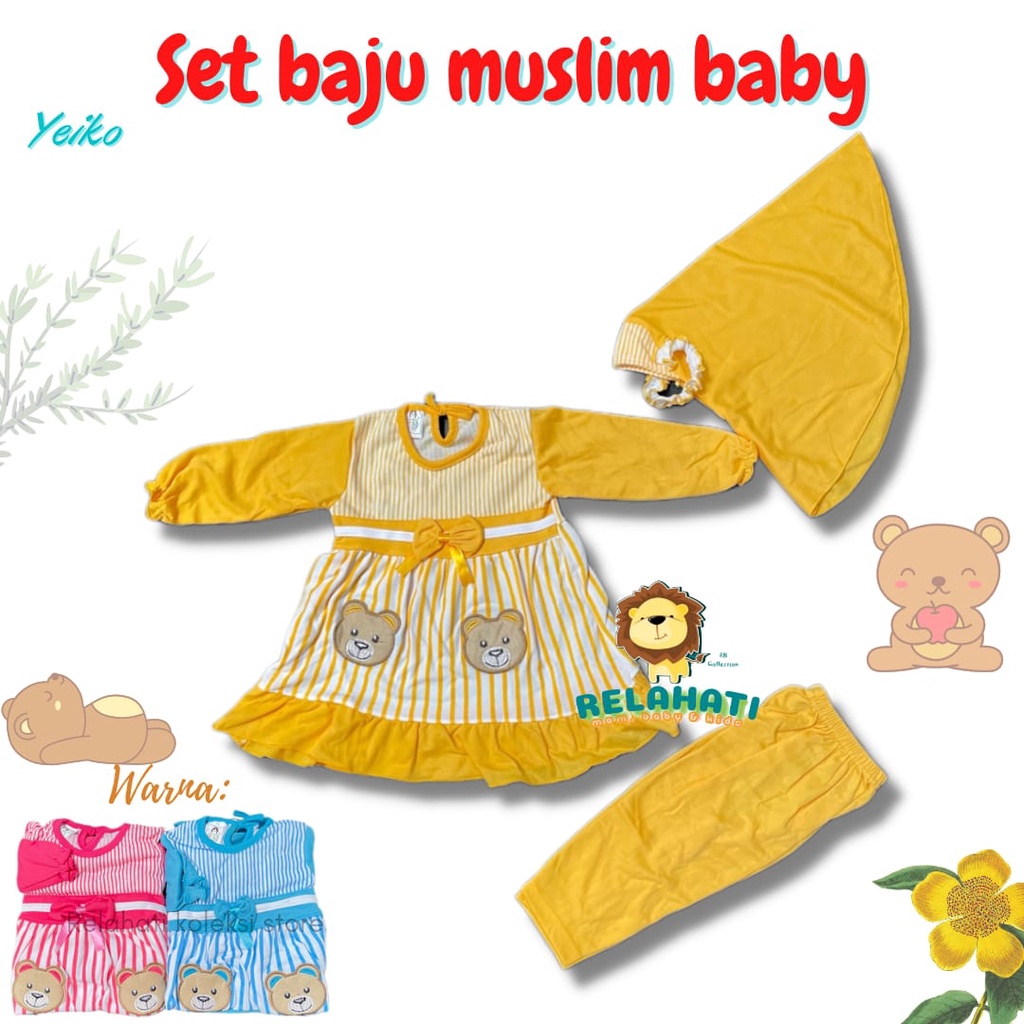 Harga Setelan Gamis Setelan Baju Muslim Pakaian Muslim Anak Bayi Perempuan Set Kerudung Yeiko Motif Bear Usia 3 18 Bulan