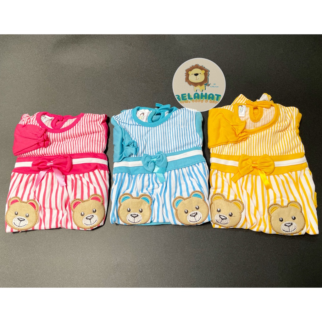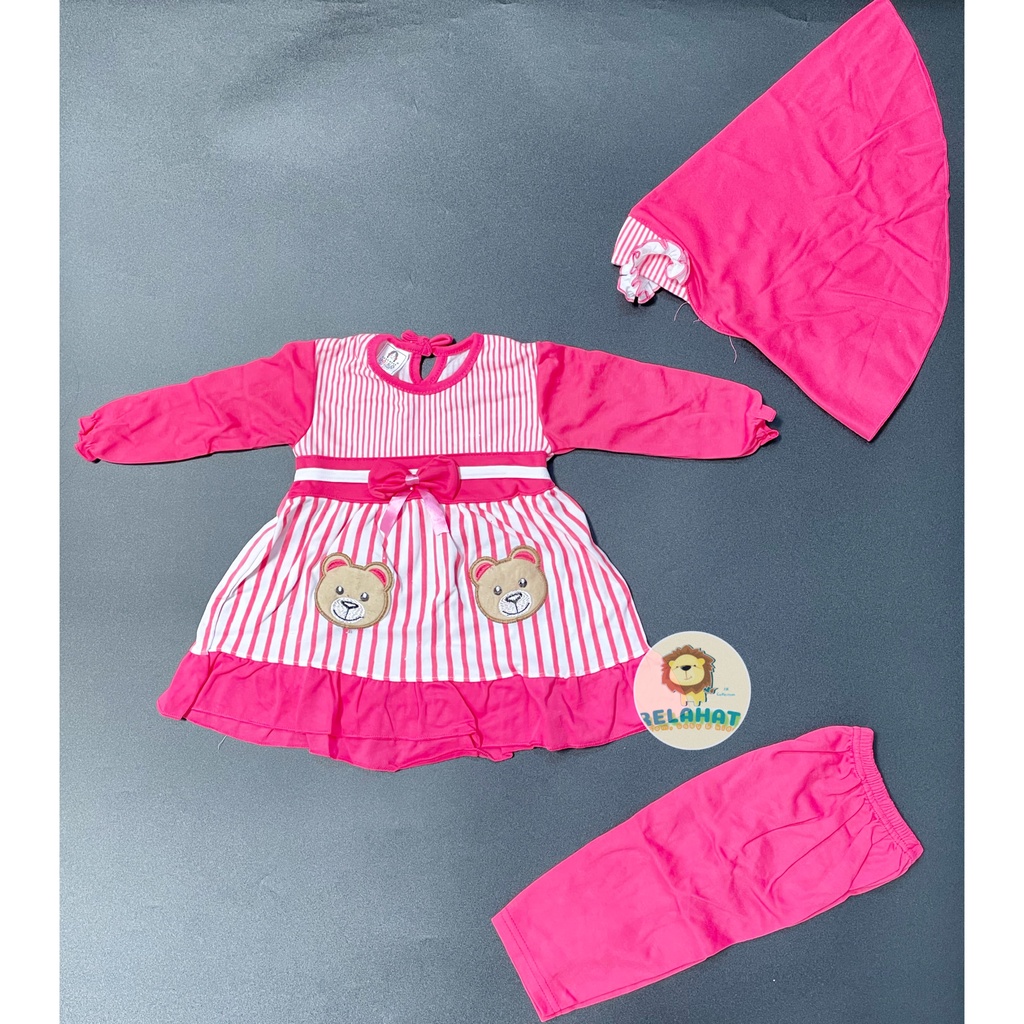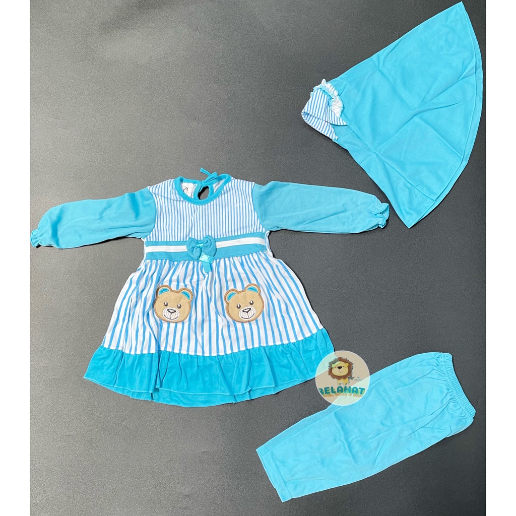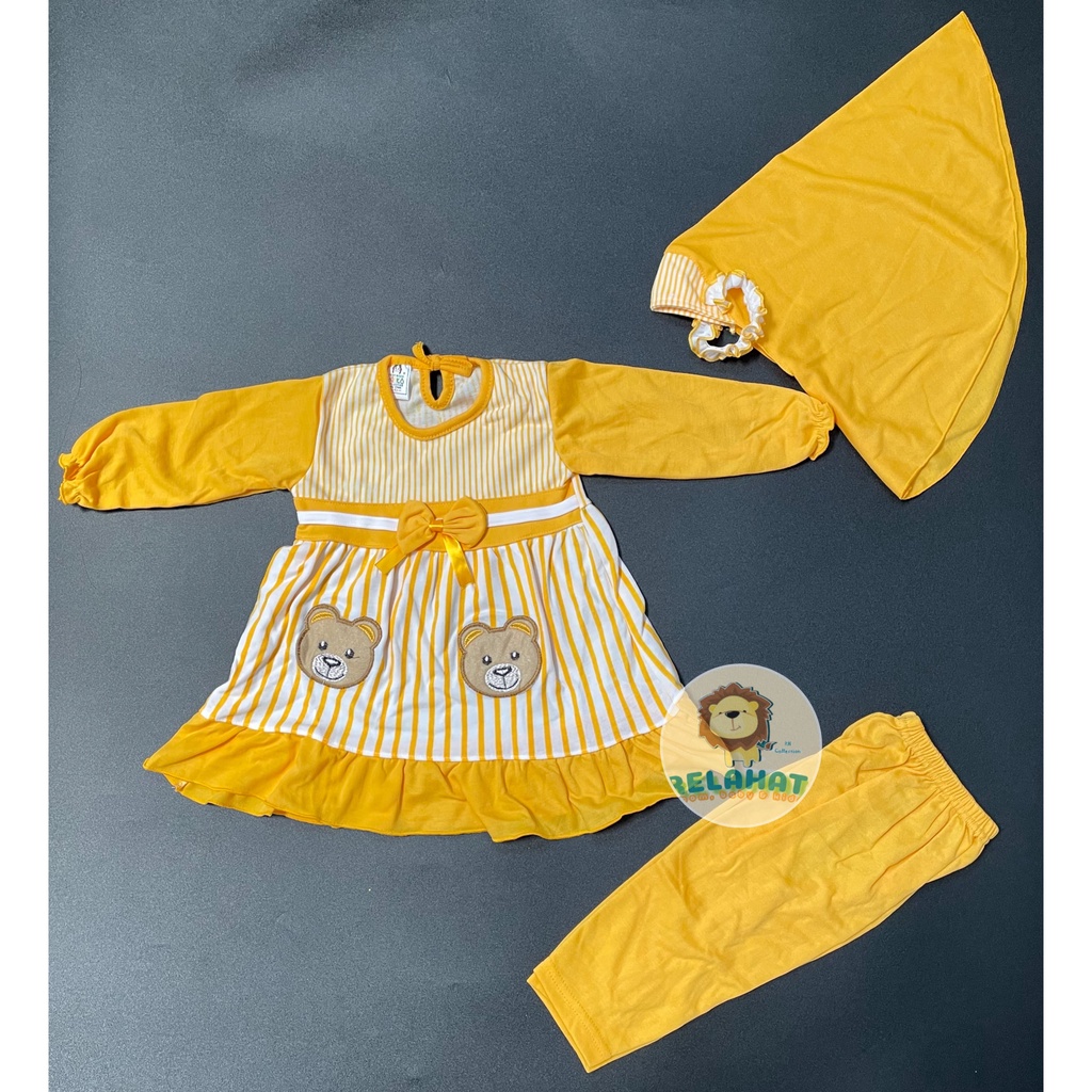 Setelan Gamis Setelan Baju Muslim Pakaian Muslim Anak Bayi Perempuan Set Kerudung Yeiko Motif Bear Usia 3 18 Bulan