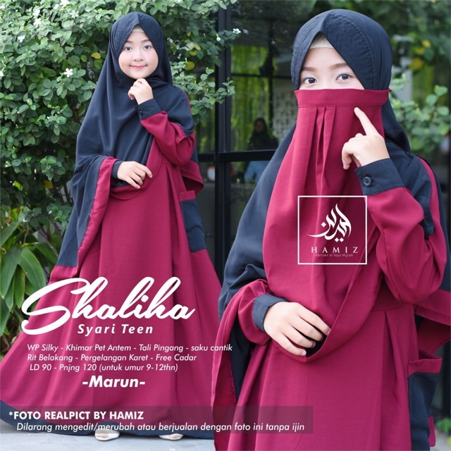 Harga SHALIHA SYARI TEEN gamis anak remaja khimar cadar wolfis original shofiya orinaura intanaka hamiz