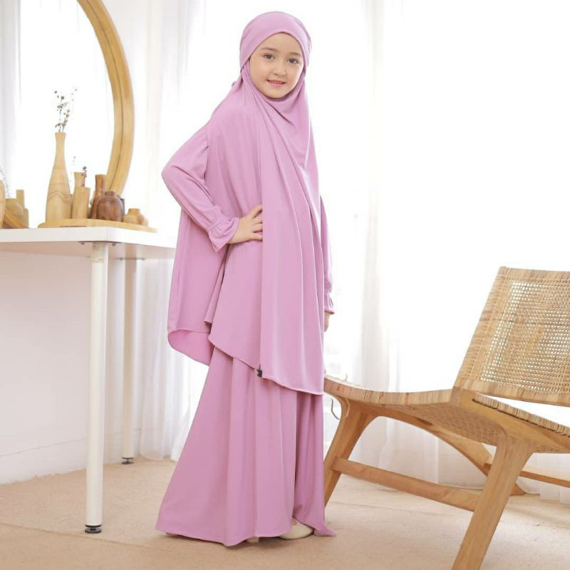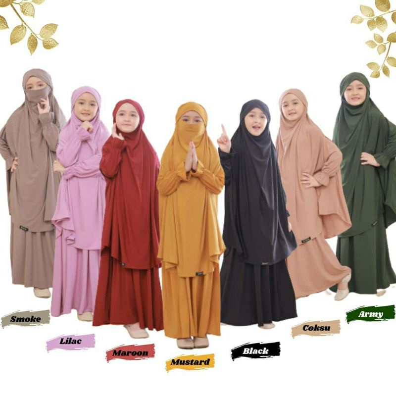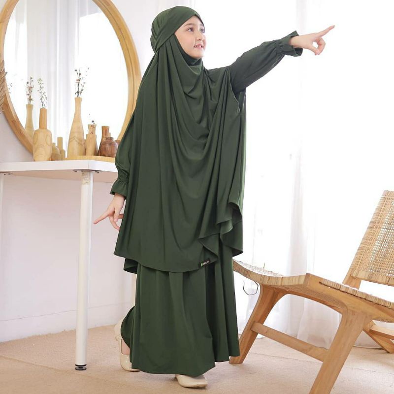 Dungdungkids Gamis Anak Perempuan Syar'i Monalisa SALMA Muslimah Setelan Plus Khimar 4 - 12 Tahun