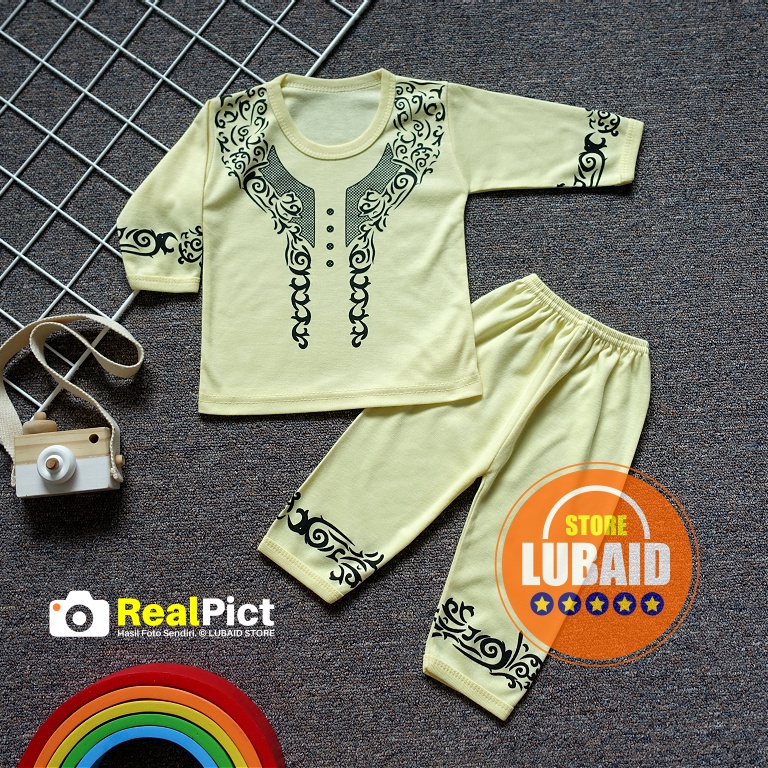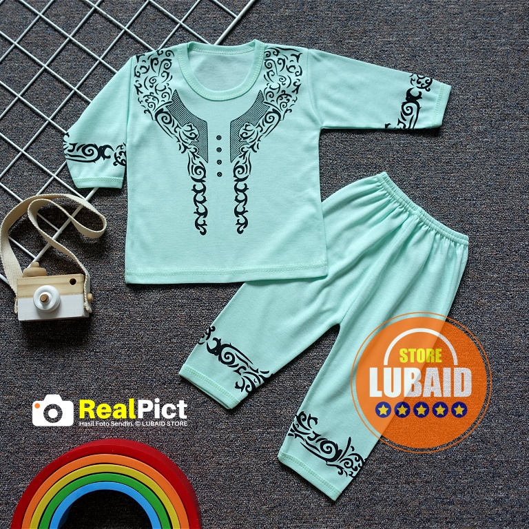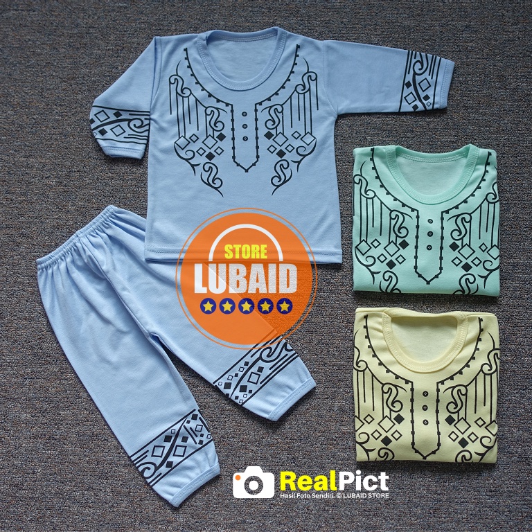 Kelebihan - Kelebihan membeli [SKA-ASYM03] LUBAID STORE, Set Baju Muslim Koko Anak ASYAM Lengan Panjang Kaos Lebaran Bayi 6-18 Bln di Toko ini