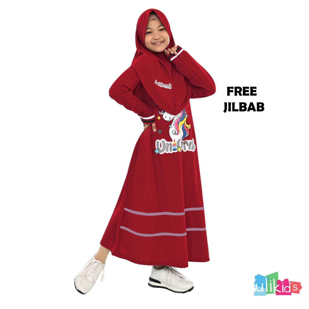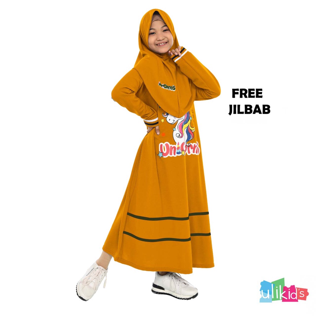 Harga Ulikids Gamis Anak PErempuan Baju Anak Perempuan Set Hijab Motif Unicorn Bahan Voxi (Free Jilbab )