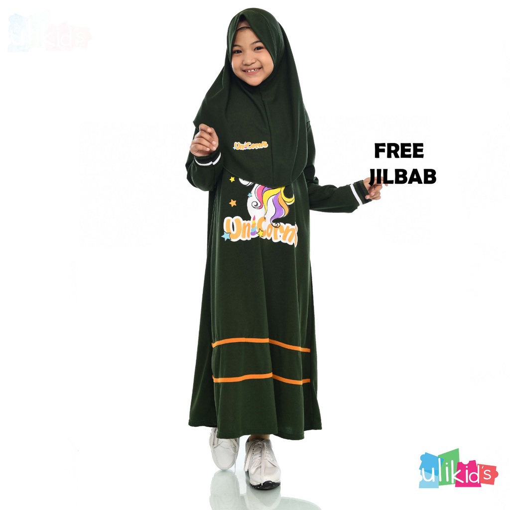 Kelebihan - Kelebihan membeli Ulikids Gamis Anak PErempuan Baju Anak Perempuan Set Hijab Motif Unicorn Bahan Voxi (Free Jilbab ) di Toko ini