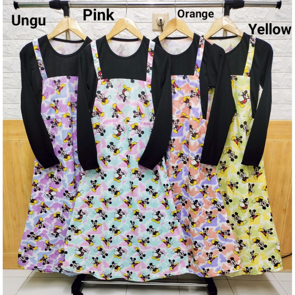 Harga Westylis Gamis Anak Perempuan Model Overall Printing Micky Tiedye (6-13tahun) Gamis Anak Cantik Baru