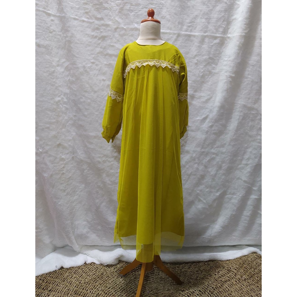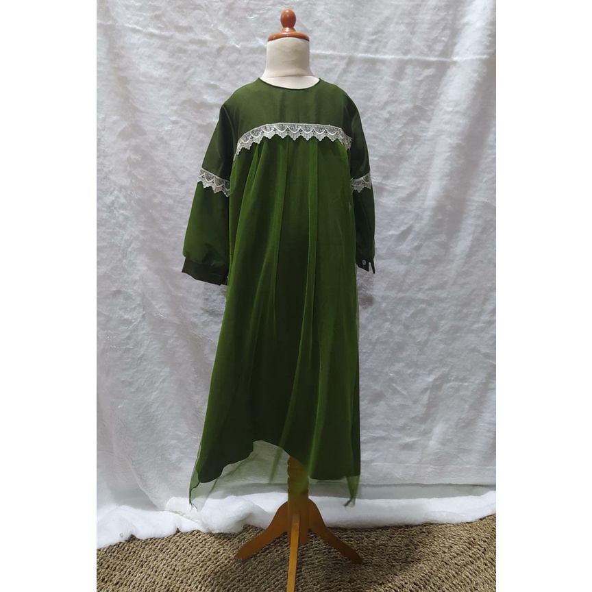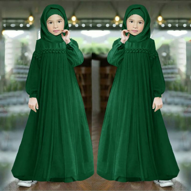 Terbaru Set Gamis Anak Perempuan Model Syari Polos Lucu Wollycrepe Warna Green Bottle Ukuran XS-XXL
