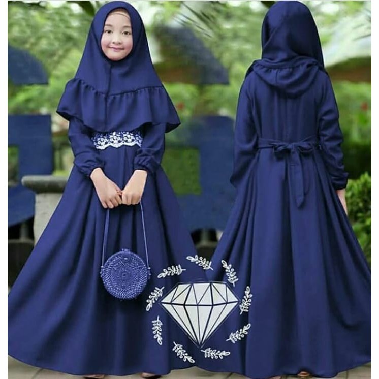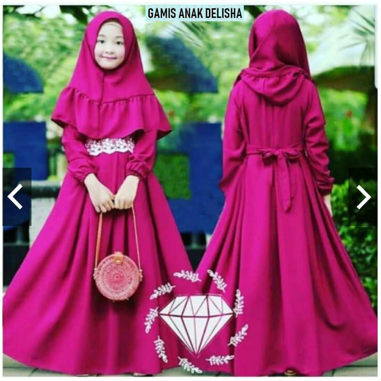 Harga alesa kids syari gamis anak set khimar wolfis tali pnggang origial free ongkir orikenzo
