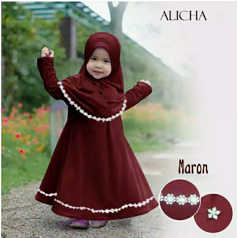 Harga Alicha Kids 3-5 Thn Set Hijab Renda Bunga Gamis Anak Balita Baby Busana Muslim Lebaran Ngaji Ramadhan Murah Lebay Best Seller Diskon Promo Flash Sale COD Terbaru Kekinian Trendy Terlaris Luna Maron