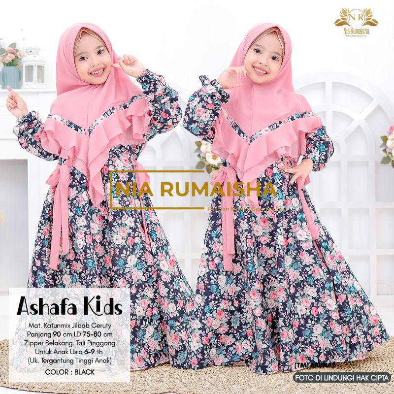 Harga ASHAFA Kids original NIA RUMAISHA gamis anak termurah gamis anak umur 6-9 tahun