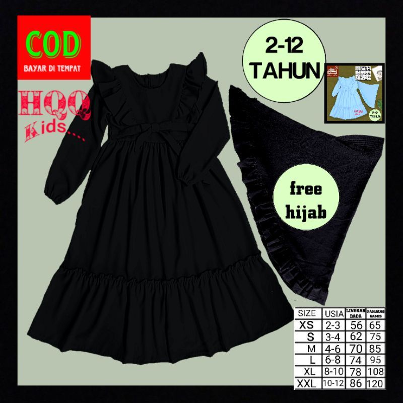 Harga Baju muslim hitam anak perempuan model ruflle bahu usia 2-12 thn