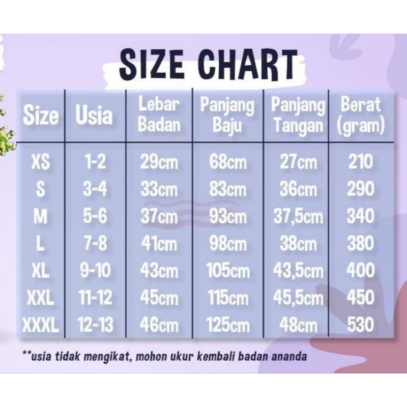 Produk ini memiliki 11 Variasi 32 yaitu : Gamis XS (1-2),Gamis S (3-4),Gamis M (5-6),Gamis L (7-8),Gamis XL (9-10),Gamis XXL (11-12),Gamis XXXL 12-13,Jilbab S,Jilbab M,Jilbab L,Jilbab XL,