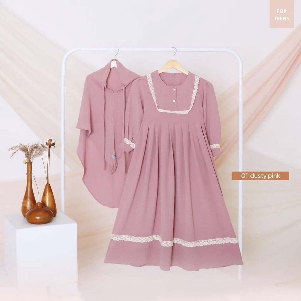 GAMIS JASMIN / PAKAIAN MUSLIM ANAK USIA 10-12 TAHUN / BAJU MUSLIM ANAK CEWE