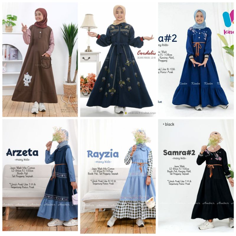 Harga gamis anak jeans/high quality/halus adem/shine maxy/arzeta/cordelia/zula