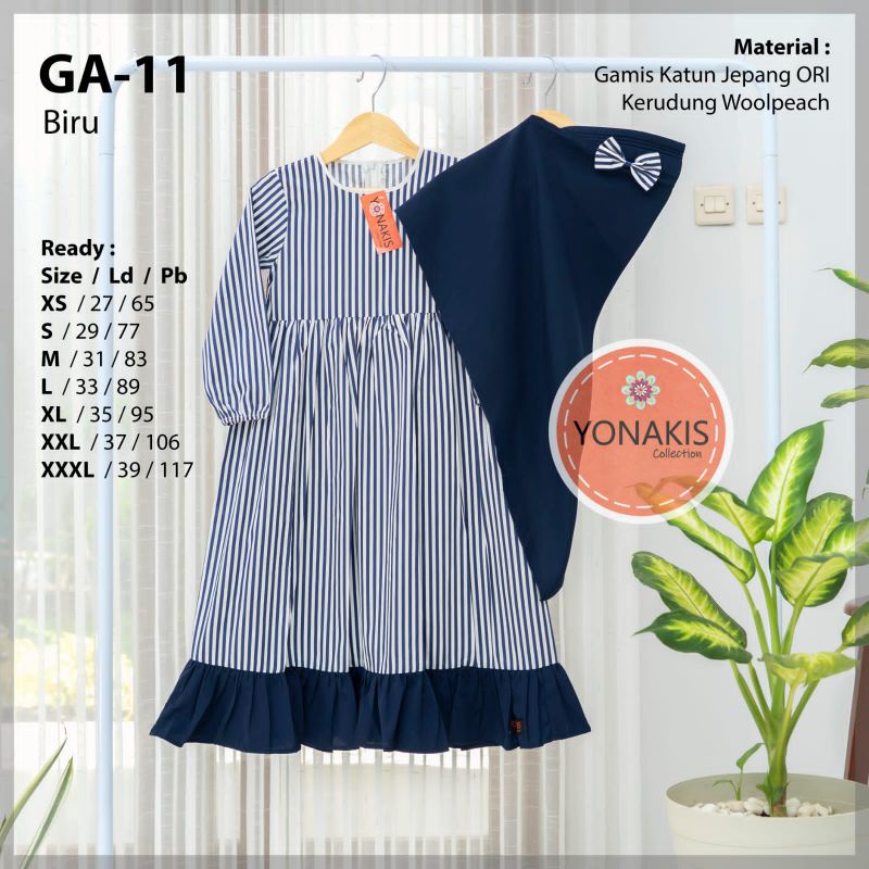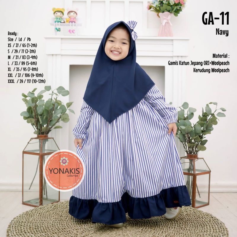Harga Gamis Anak Perempuan Katun Motif Salur Termurah usia 1-12thn GA-11 by Yonakis