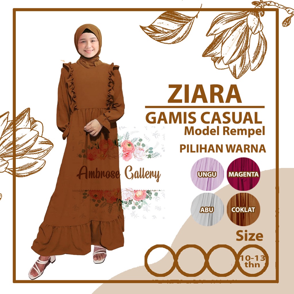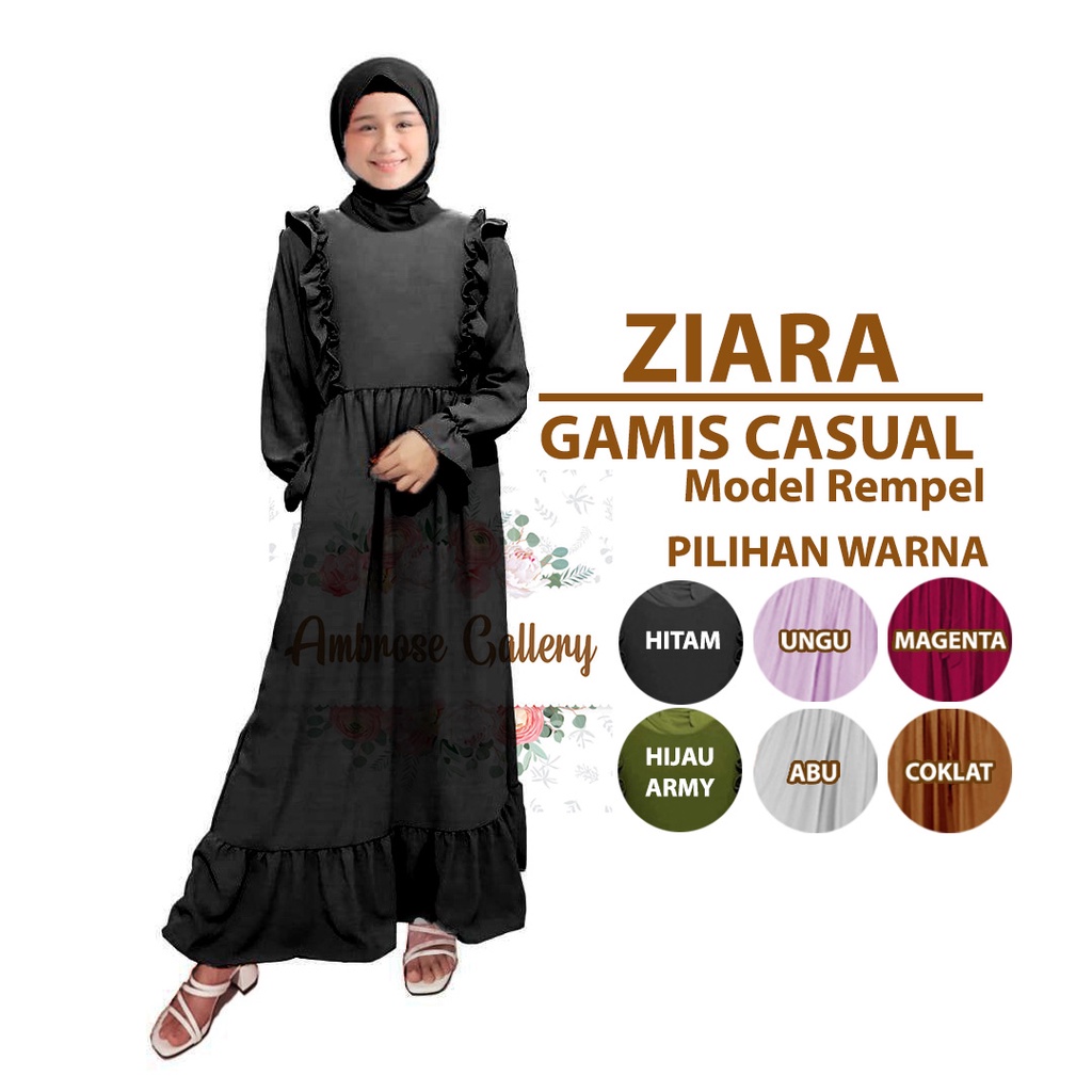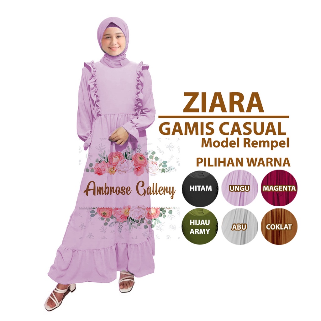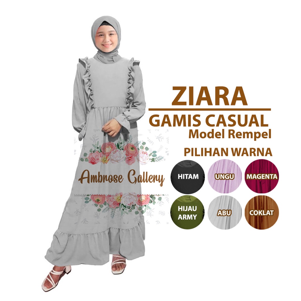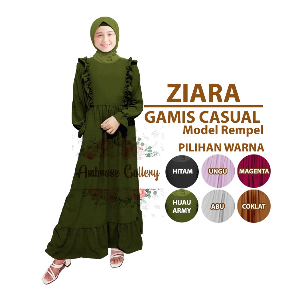 Harga Gamis Anak Perempuan ZIARA Abaya Model Crinkle Rempel Remaja Tanggung ABG Usia 10 - 13 th Warna Abu Coklat Lilac Hitam Hijau Army Magenta