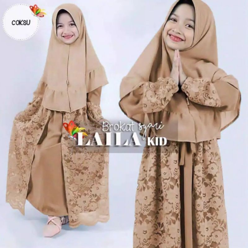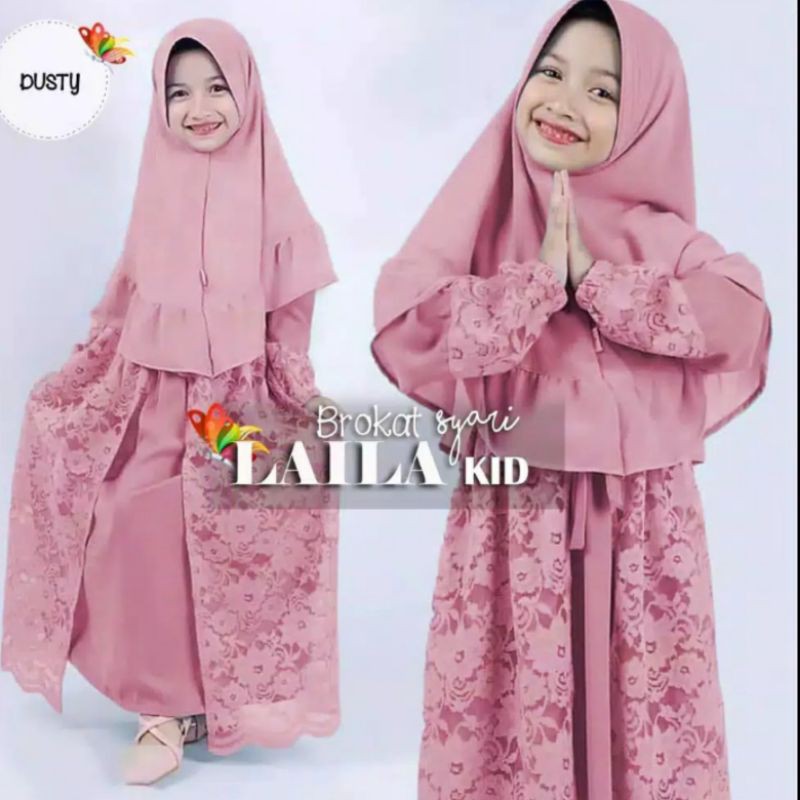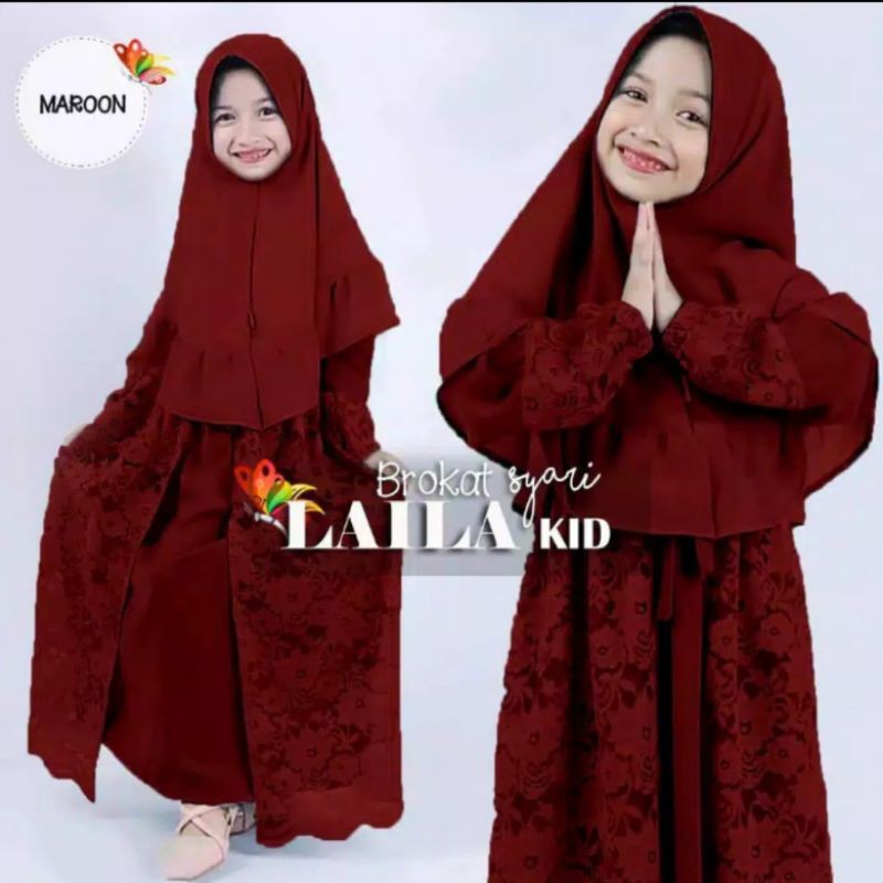 gamis brokat anak/Laila kids syar'i/Baju muslim anak set/pakaian anak perempuan 3-12th