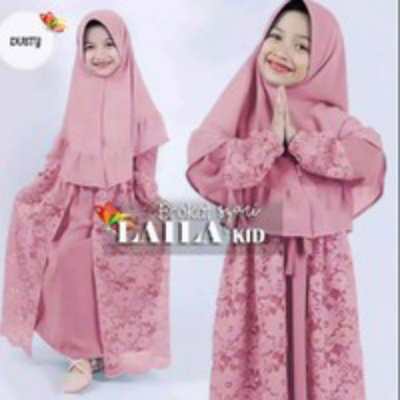 Harga gamis brokat anak/Laila kids syar'i/Baju muslim anak set/pakaian anak perempuan 3-12th