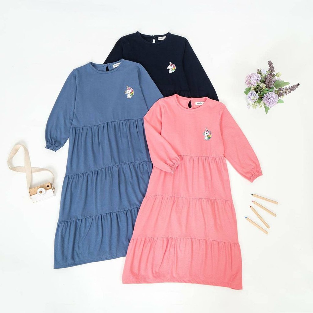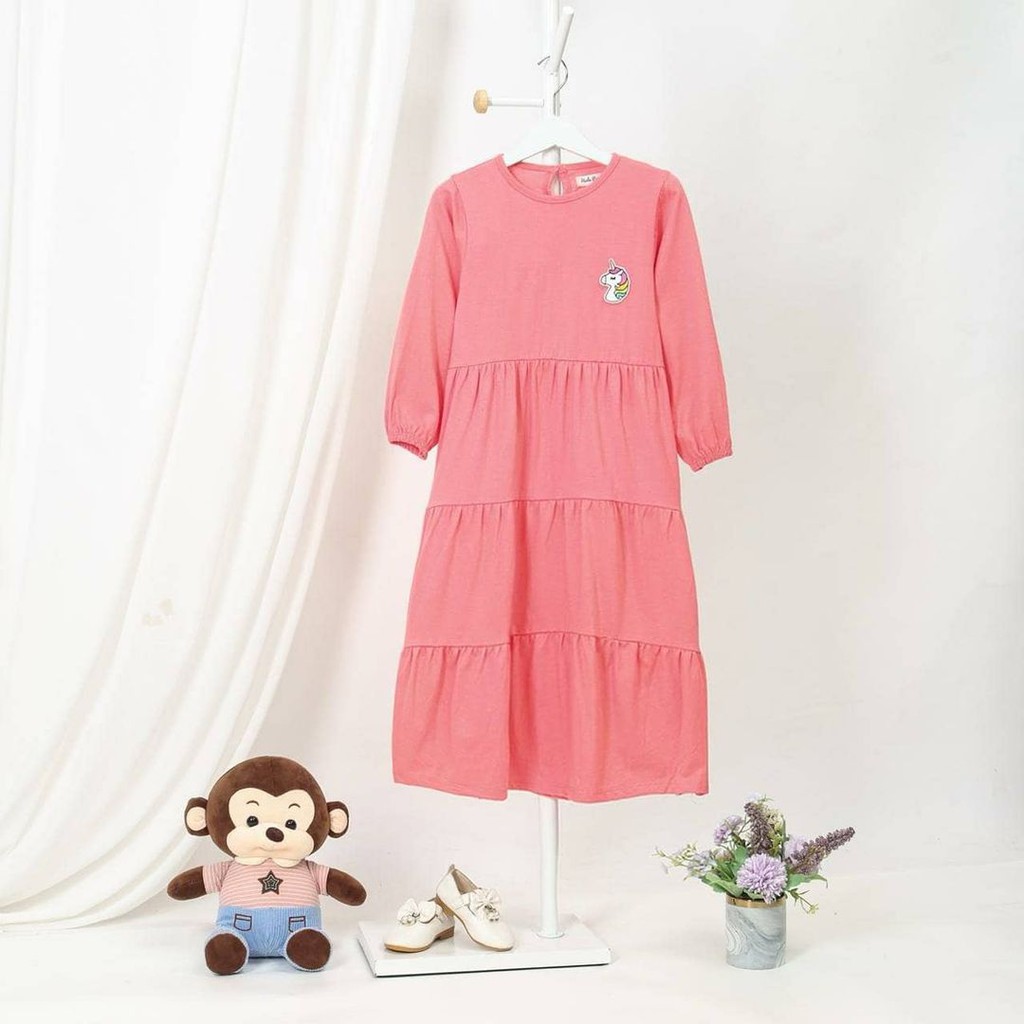 Harga HULAPOP Gamis Anak Cewek Model Rempel Motif Bordir Di Dada Usia 1 2 3 4 5 6 7 8 Tahun Bahan Kaos