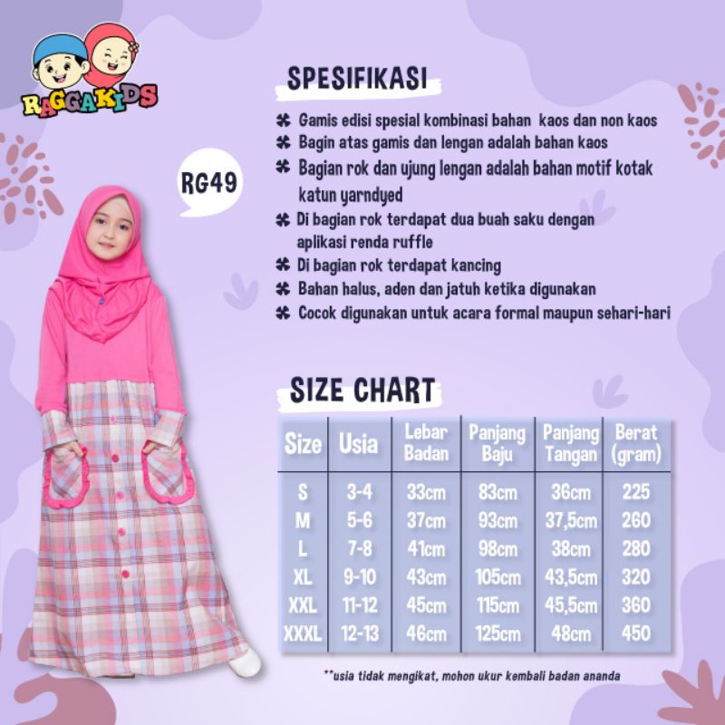 Harga Raggakids Gamis Anak Usia 3-13 tahun RG49 // Ragga Kids RG 49