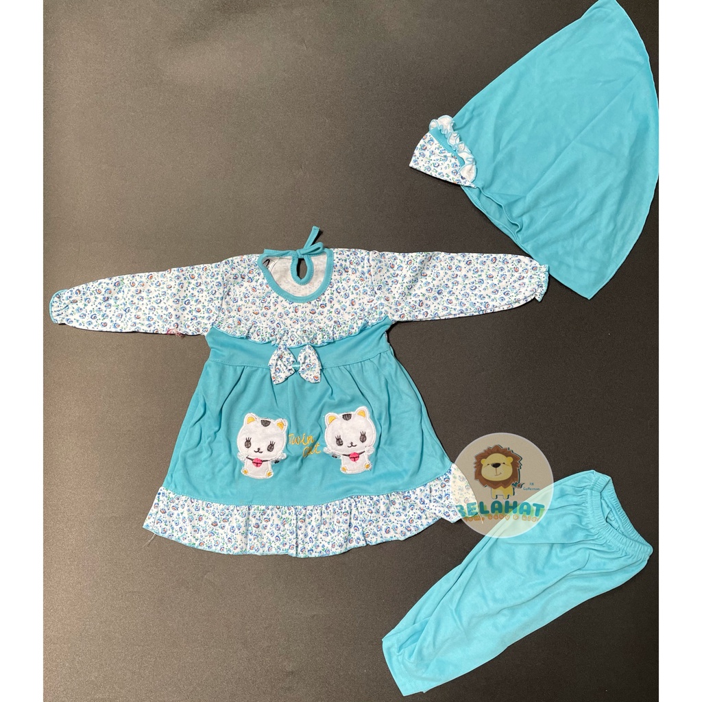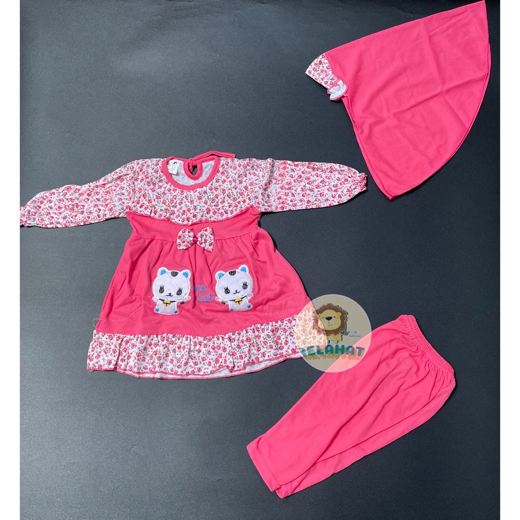 Harga Setelan Gamis Setelan Baju Muslim Pakaian Muslim Anak Bayi Perempuan Set Kerudung Yeiko Motif Twin Cats Usia 3 18 Bulan