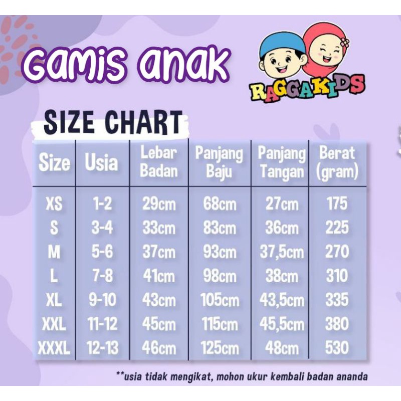 Produk ini memiliki 4 Variasi SIZE yaitu : XS (2-3th),S (4-5th),M (6-7th),L (8-9th),